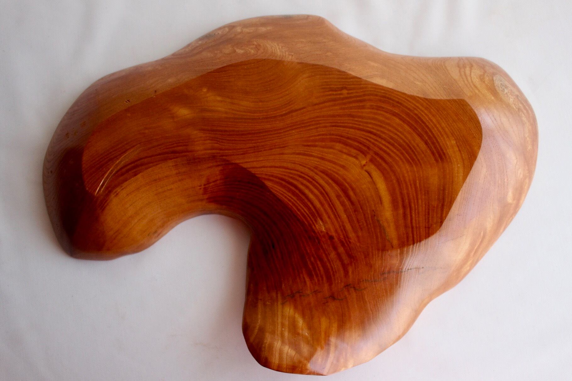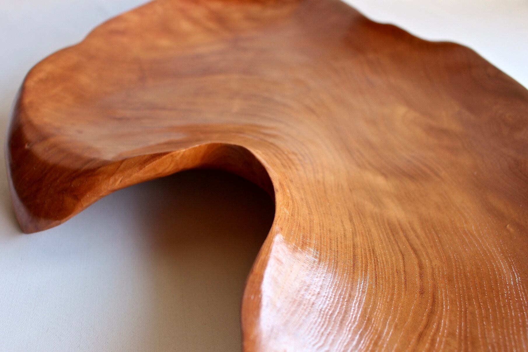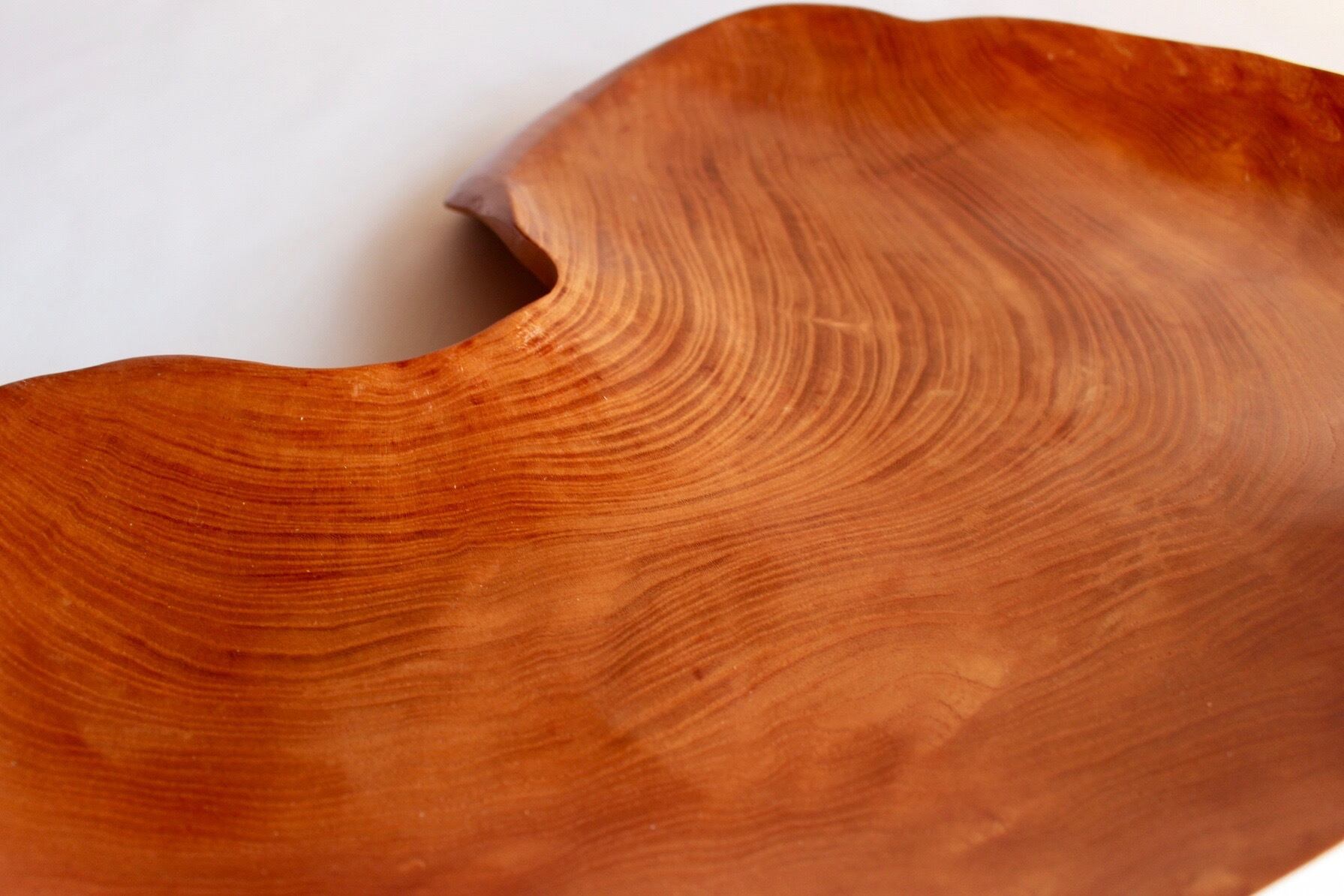 部位ごとの杢の文様と素材自体の個性を活かす形に彫り出して磨き