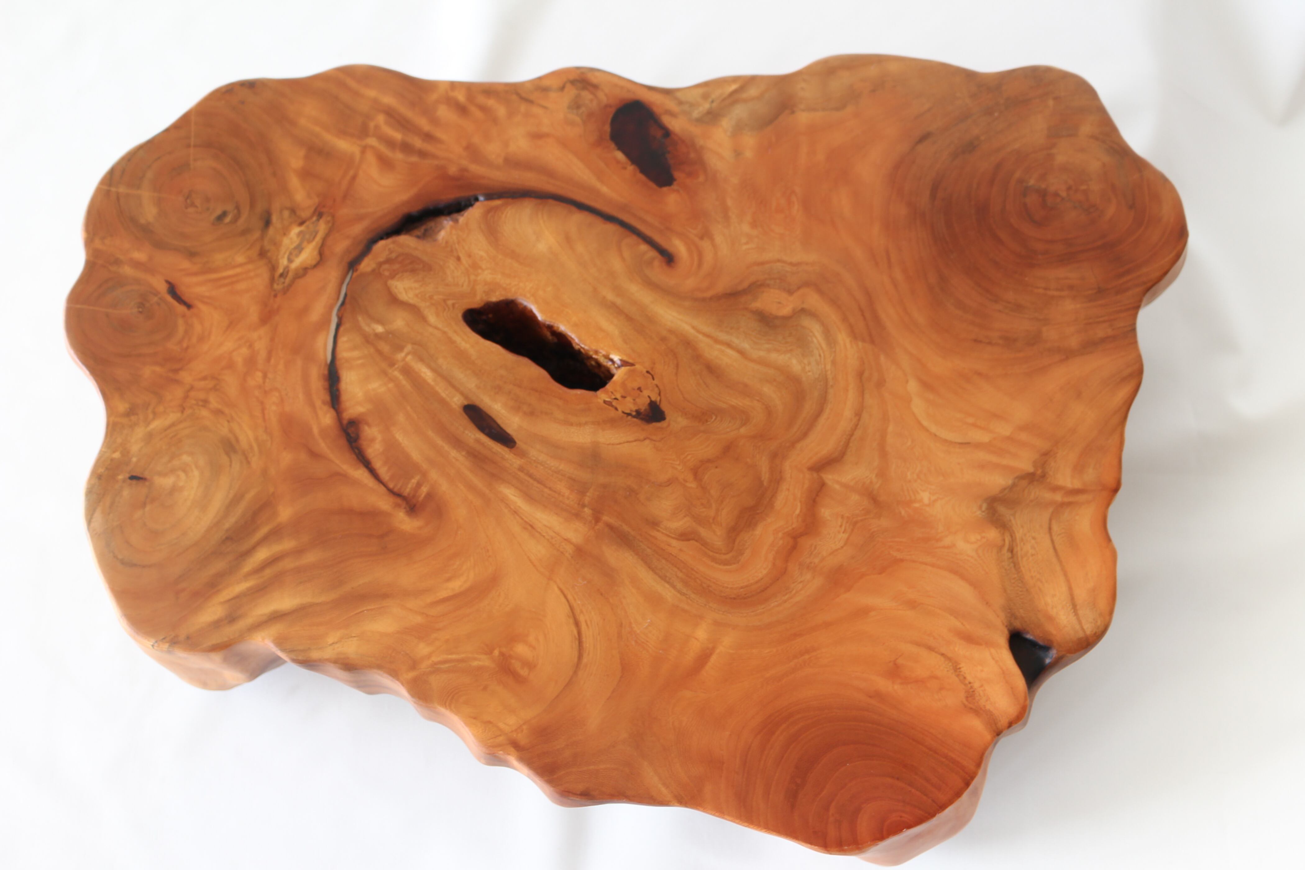 この杢目はこのけやきが巨木であったことの証、花台自体は小さな物ですが表面もそして裏面も