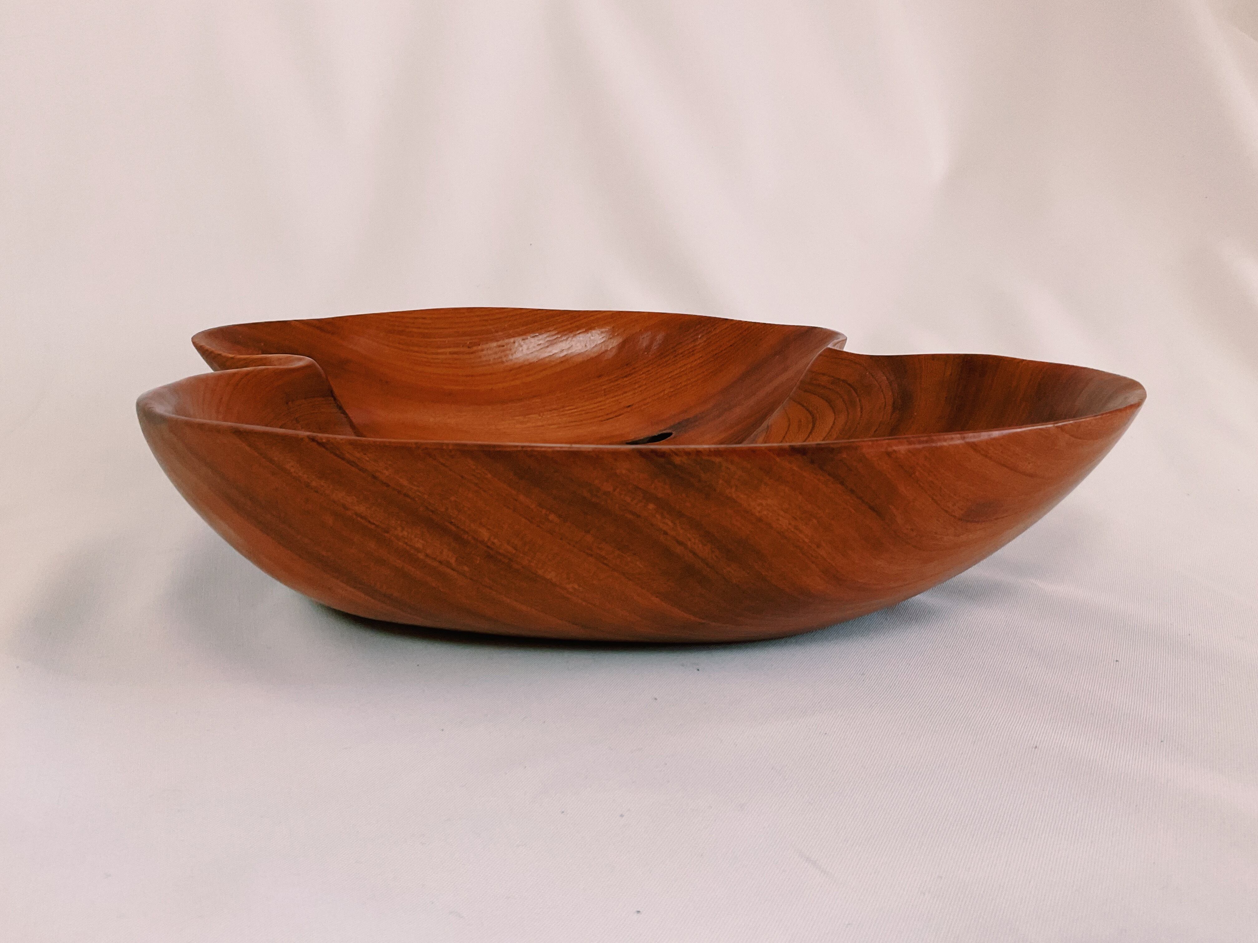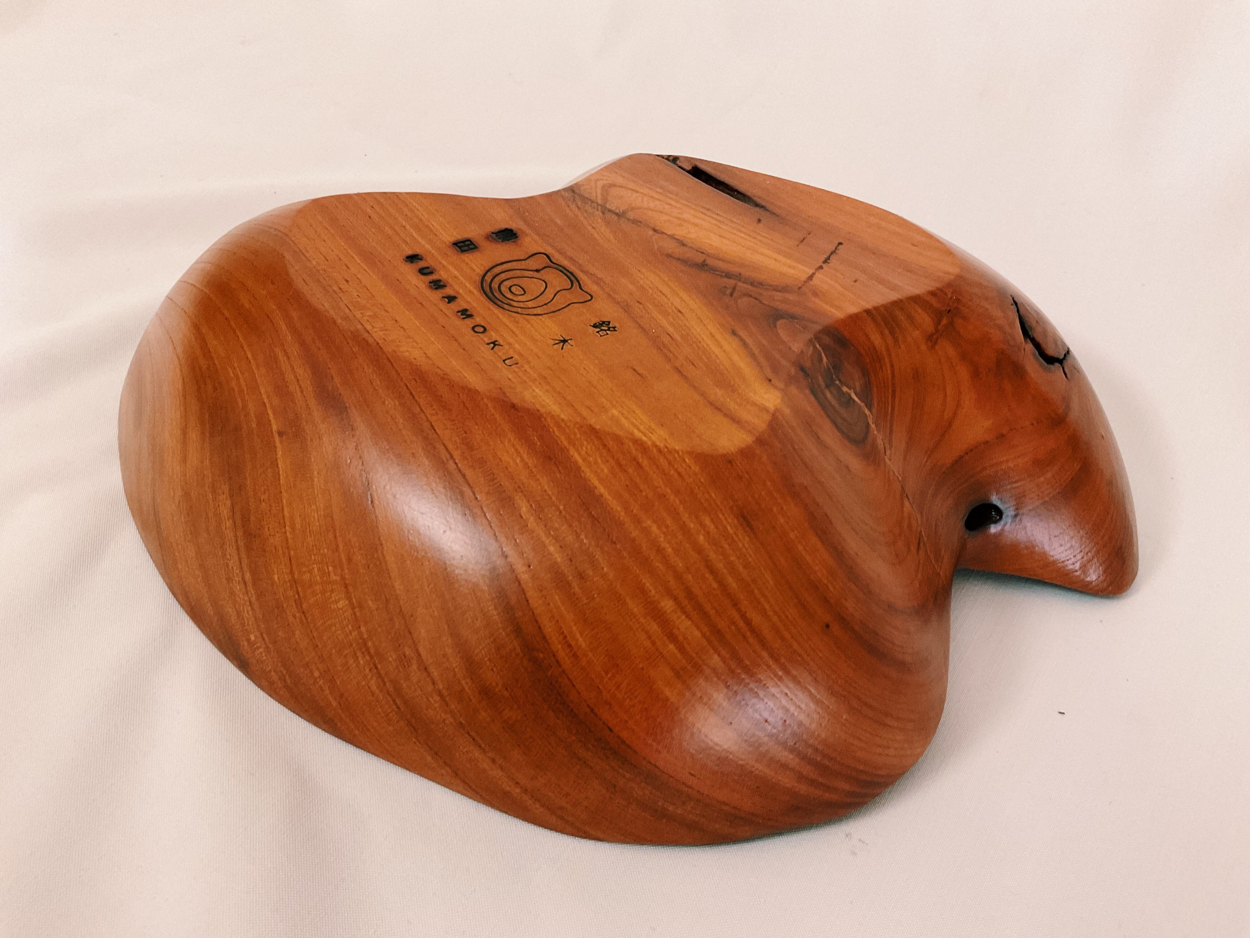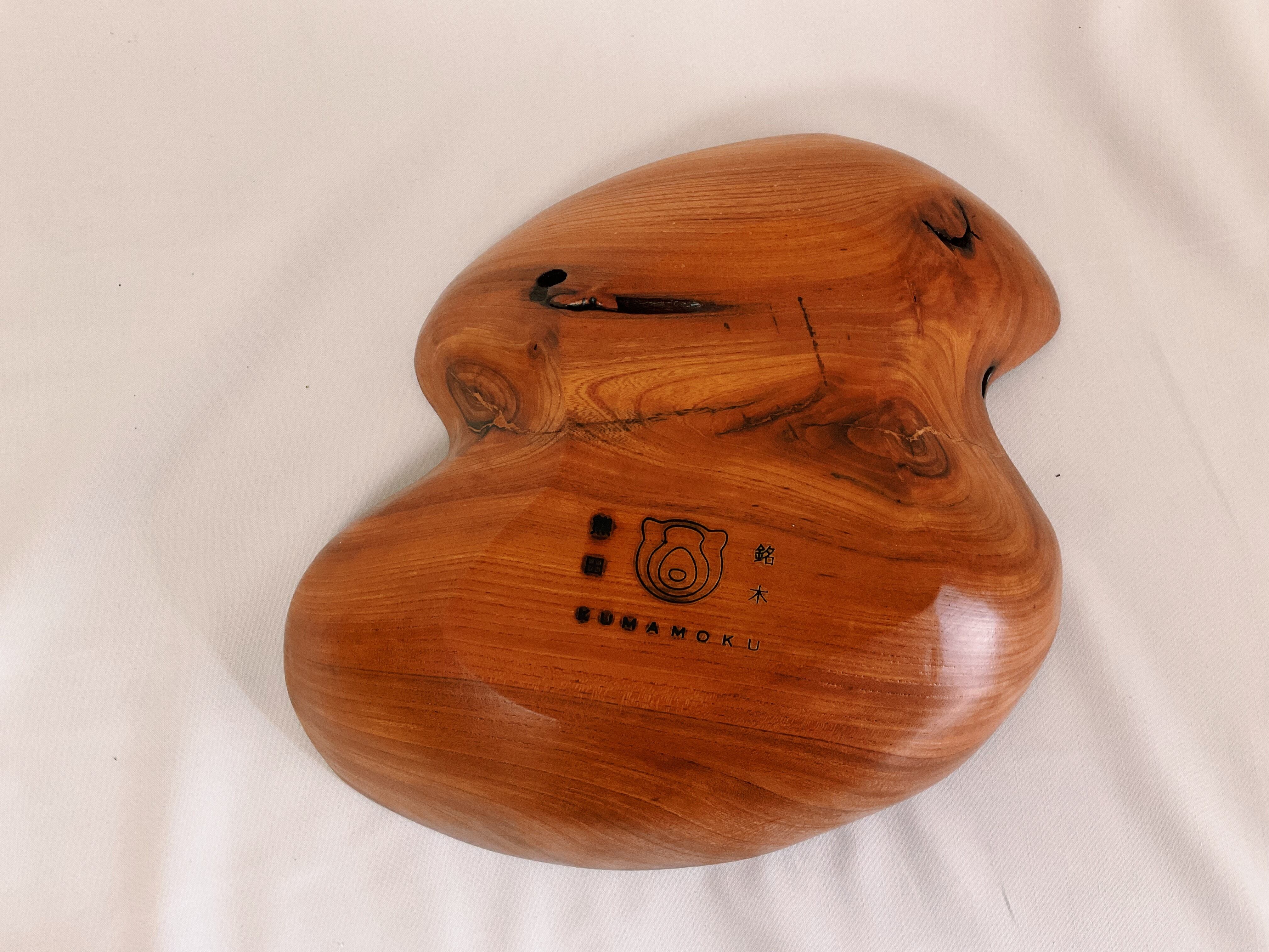 「行雲」は遊び心あるユニークな形です。内側の深みのある杢目が活きるように磨き出していますので