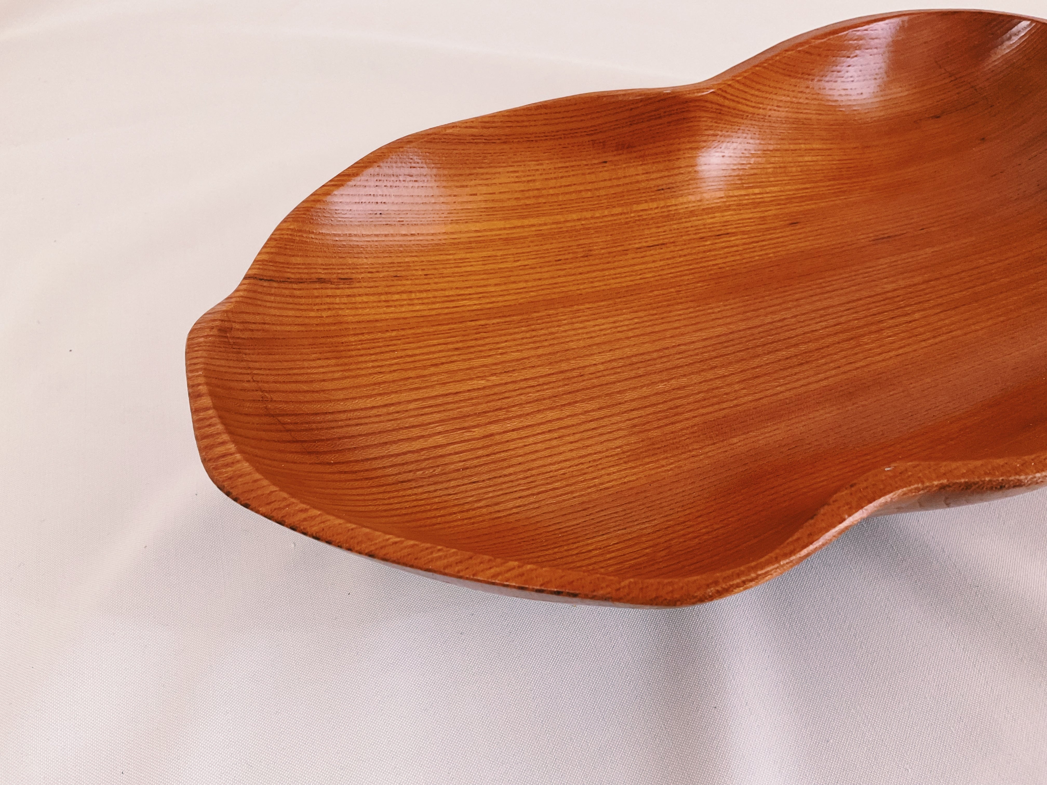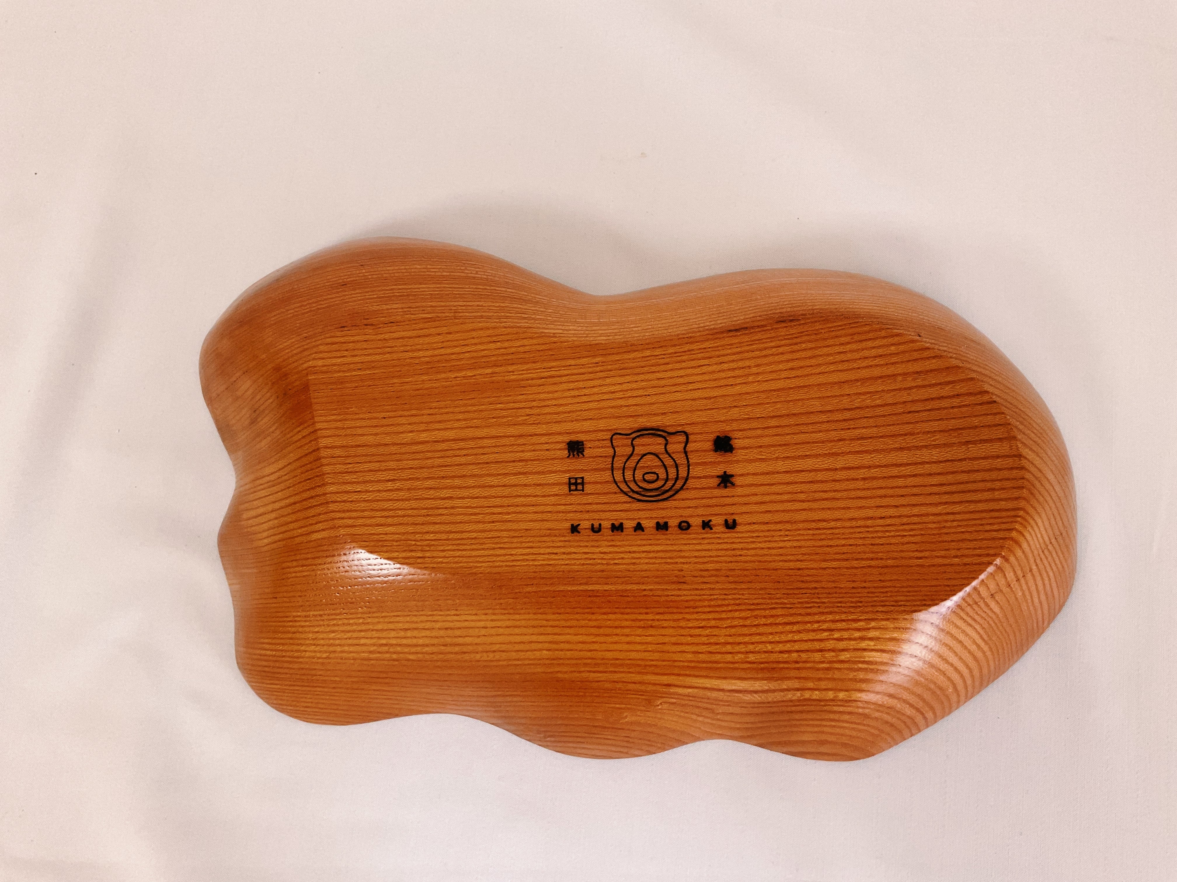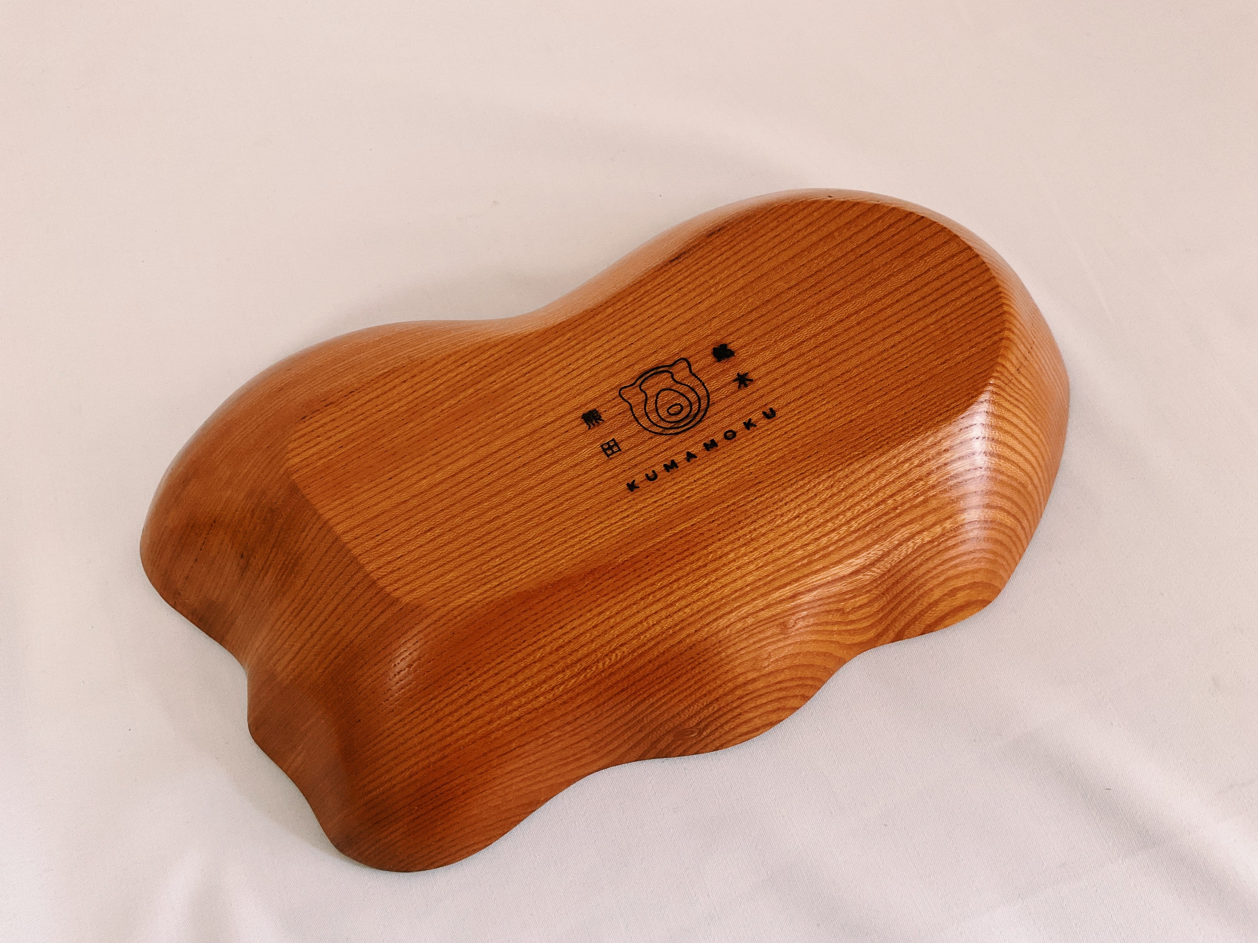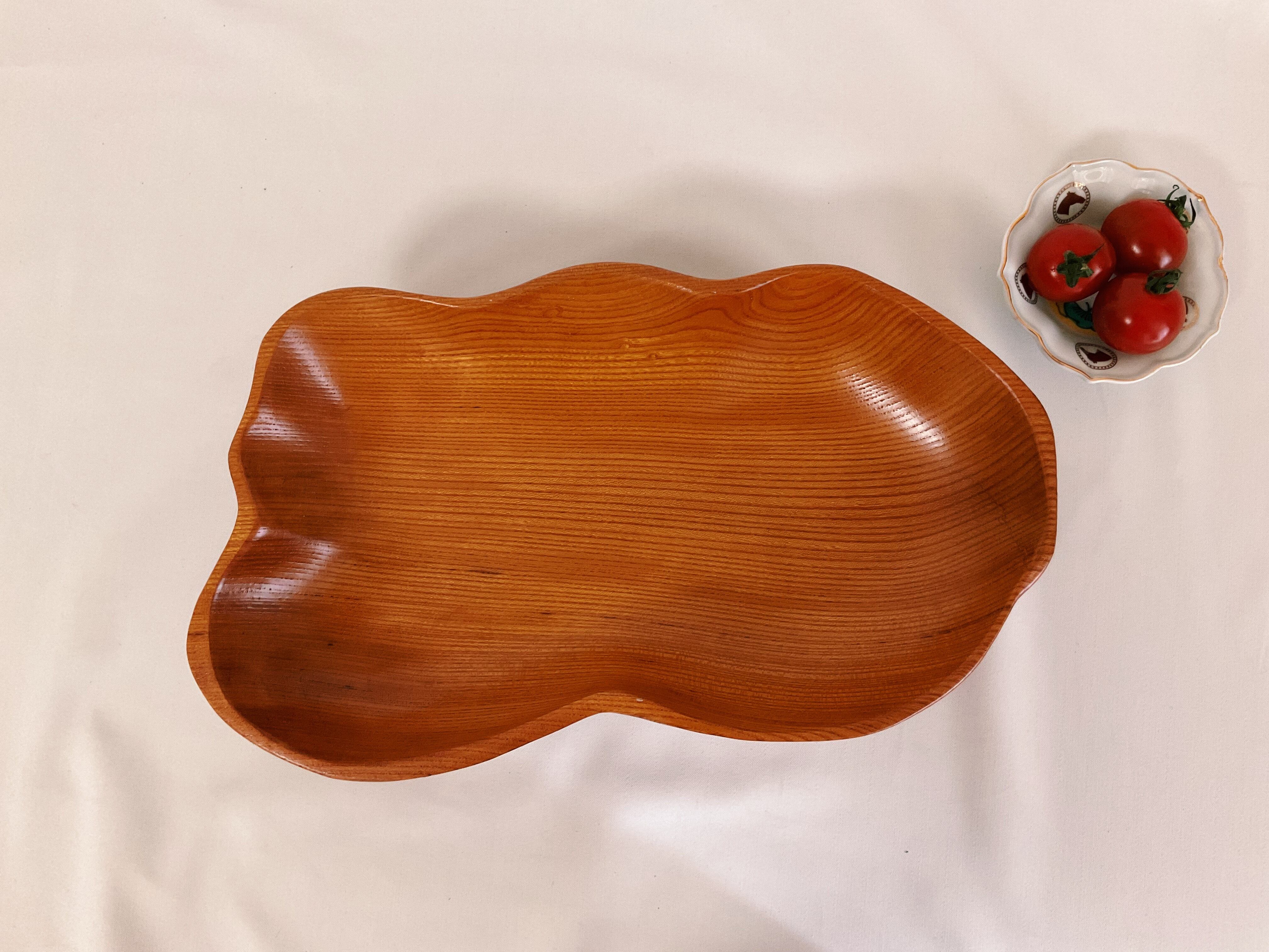 「豊旗雲」は横長であること、軽やかな部位(同じ1本の木でも木目の詰まり具合により、軽い部位と重量のある部位があります)を使っていることもあり、食卓でパンなどを載せるにも扱いやすい1台です。